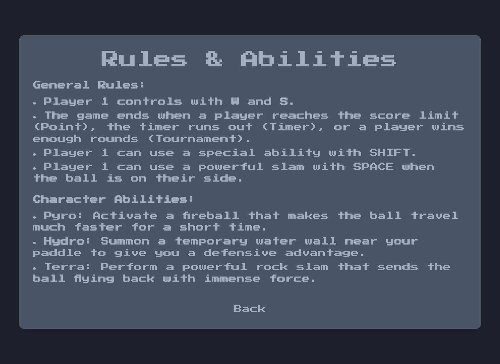 Welcome to the new Pong! Here, you have passive abilities, special stages, and smashing the ball to the doom of your opponent! Try all the characters out!